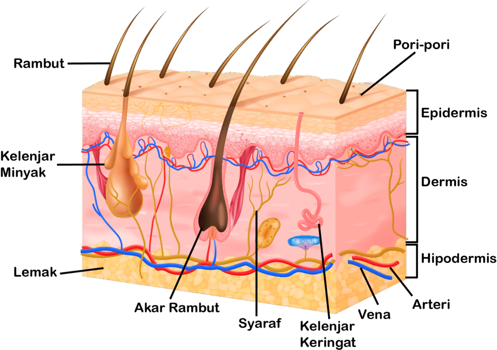 – Pembuluh darah: membantu mengatur suhu tubuh dan memberikan nutrisi ke kulit.